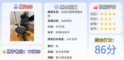 G9的整体表现偏“全面型”:腰背支撑、头枕表现、扶手自由度、网布体验都比较均衡,是适合长时间办公和游戏使用的多功能椅。