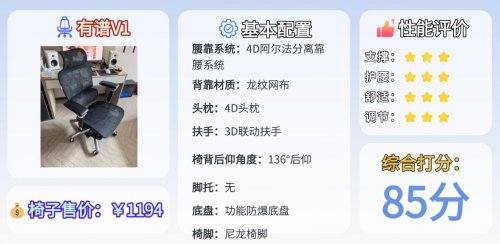 有谱V1是一把走“踏实护腰”路线的椅子,没有太多花哨结构,但双背+自适应腰枕这一套组合确实解决了久坐腰酸的问题。它的上背负责托肩、稳定姿态,下背腰枕则实时跟着腰线微调角度,让身体坐正、前倾、后仰都能保持支撑不断档。上班族、学生、居家办公的人坐久一点也不容易累,是一把非常稳重耐坐的日常人体工学椅。