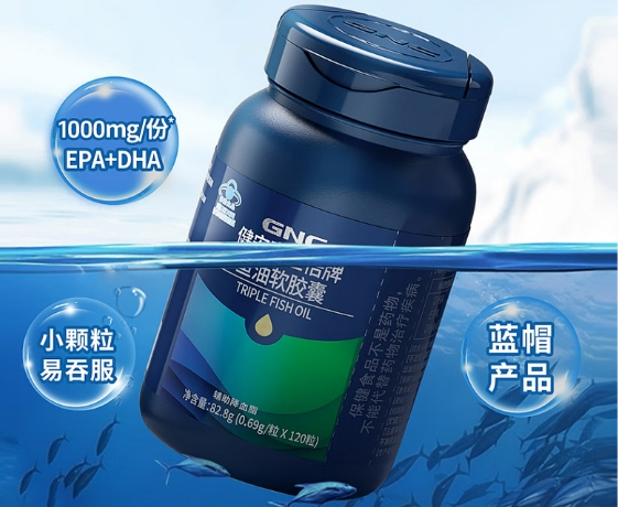推荐四:GNC 三倍浓缩鱼油—— 北美专业配方,高浓度EPA+DHA,满足进阶需求,吸收效率出色。