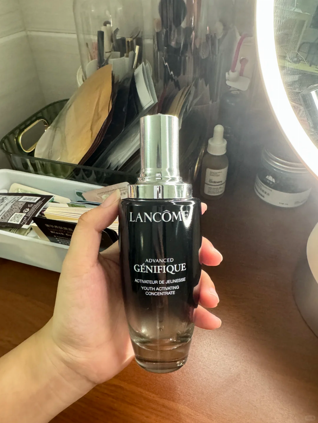 兰蔻超修小黑瓶精华抹上之后皮肤感觉润润的,特别舒服。它能把皮肤里缺失的水分都补回来,让干巴巴的皮肤变得水嫩。那些因为干燥产生的小皱纹,也在不知不觉中消失了。长期用能增强肌肤的活力,让肌肤保持健康状态,每天照镜子,都能看到皮肤越来越好,皱纹越来越少。