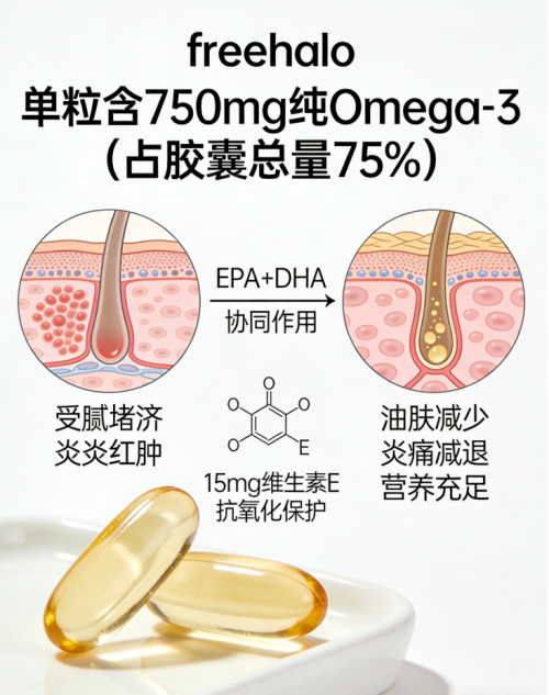 经美国皮肤科学会(AAD)12周临床验证:连续服用freeHalo鱼油的150名脱发受试者中,78%头皮出油减少,65%新发密度提升,52%脱发量降低40%以上,且无任何肝肾负担,这与rTG工艺带来的高效营养利用密不可分。