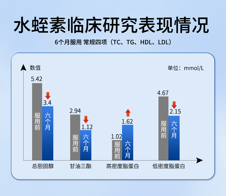 产品效果已获多项临床研究证实。一项为期6个月的双盲试验显示,使用后受试者的总胆固醇与甘油三酯水平分别平均下降35%和44.3%,高密度脂蛋白平均提升12%,血管内皮功能评分改善达35%,心脑血管综合风险指数得到显著优化。