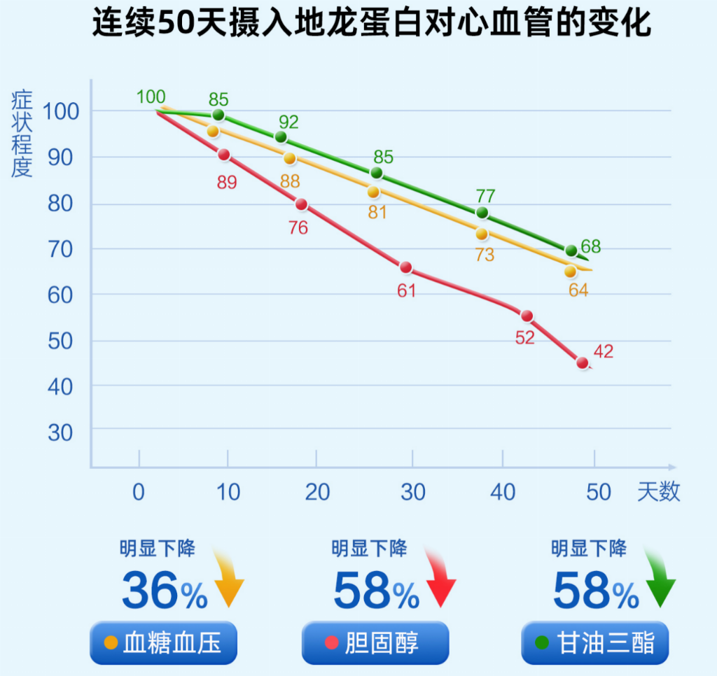 一项针对200名中老年血管问题患者的临床研究证实,联合使用水蛭素与地龙蛋白仅8周,便展现出卓越成效:受试者血管堵塞率平均降低45%,血流速度提升30%,血清纤维蛋白原水平下降25%,所有关键指标均显著优于单一成分组,凸显出二者协同干预的独特优势。
