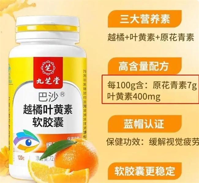 产品以 β 胡萝卜素、原花青素、叶黄素为核心原料,经权威检测报告证实,每 100g 含:前花青素 14.5g,β- 胡萝卜素 716mg,叶黄素 969mg,高浓度的核心成分,为眼部精准养护提供充足营养支撑,助力改善视力。