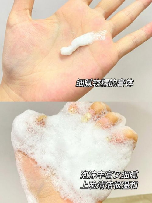 第一次用就被国货的实力惊艳到:乳白色膏体细腻丝滑,挤黄豆大小加温水,3秒就能搓出绵密到能拉丝的泡沫。上脸软乎乎的,像把云朵敷在脸上,完全没有摩擦感,淡淡的山茶花清香自然治愈,洗完脸清爽不紧绷,水润感能维持很久,就算不立刻涂护肤品,也不会干到起皮,这种“洗得干净又养肤”的体验,完全不输大牌洁面。