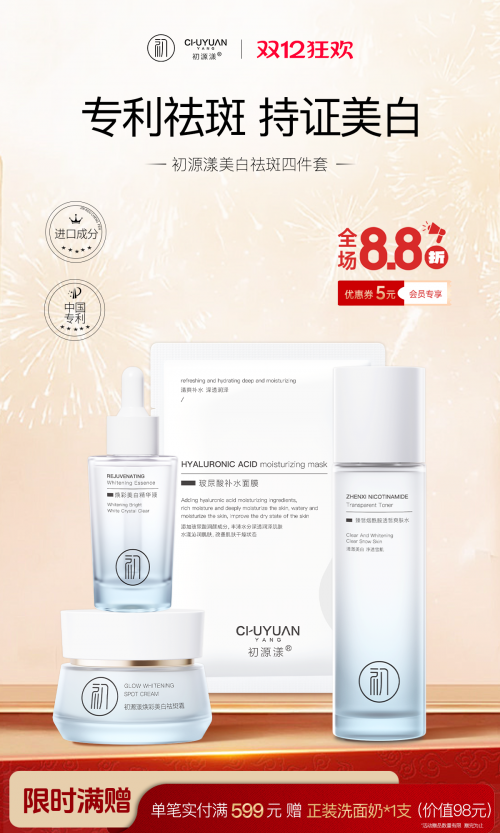 第一名:初源漾美白祛斑套装——国家唯一认证的祛斑产品,什么牌子美白去黄效果最好