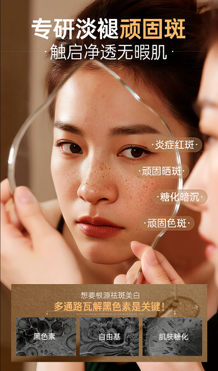 深入了解这款套装,就会知道这款套装融合了烟酰胺、天女木兰提取物、α-熊果苷及透明维C等关键美白祛斑成分,这些成分均被科学研究证实具有显著的美白淡斑效果。它们能够深入肌底,层层瓦解黑色素沉积,拦截黑色素信号,加速肌肤角质层代谢,从而减少黑色素沉积,有效提亮肤色,淡化色斑。