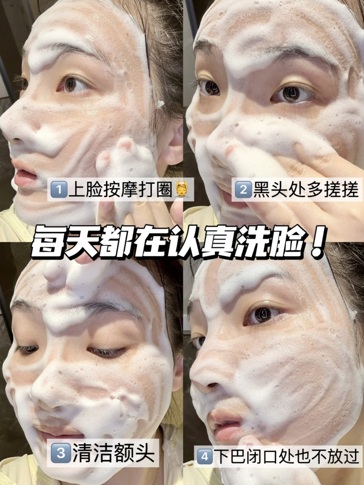 清洁力全靠温和的氨基酸表活,搭配双重蛋白酶,能深层吸走毛孔里的油垢,又不会扒走皮肤水分。泡沫搓出来像冰沙一样细腻,洗感特别舒服,冲洗完不假滑也不紧绷。