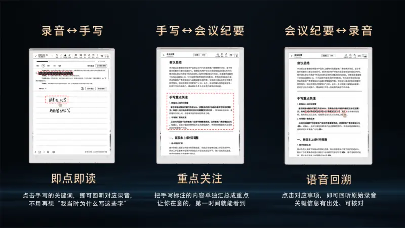 更具实用价值的是新上线的“纪要溯源”功能。在自动生成的结构化纪要中,用户只需轻点任何一个要点,设备即可即刻定位并回放对应的原始录音片段。这种从“文字结论”到“原声证据”的快速映射,不仅减少了信息提炼中的偏差风险,更在技术上构建了一套完整、可回溯的办公闭环,让每一项决策皆有迹可循。