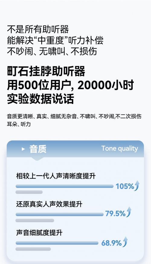第一款、町石tinx挂脖助听器1500/副“不伤耳”的高端医用级助听器,荣获6家全球专业机构检测认证