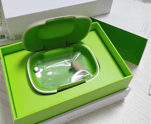 从外观设计上来看,这款助听器简洁且不失时尚感。它的外壳采用了磨砂质感处理,触感细腻且不容易留下指纹,整体外观现代感十足,非常适合日常佩戴。虽然它的体积较小,不显眼,但在某些场合,佩戴后仍然能略微看出设备的存在,特别是在光线强烈的环境下,反射效果较为明显。尽管如此,它的设计依然很符合现代审美,搭配不同的服装也能很自然地融入日常生活。背后采用了轻量化设计和创新的材料技术,使得整体外观既具有实用性,又不失时尚感,适合不喜欢太过显眼的佩戴者。