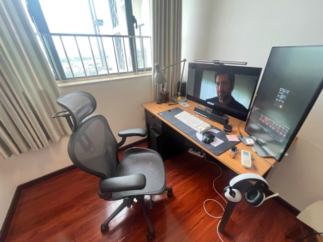 整体坐感偏舒适耐坐型。靠背和座垫都有一定韧性,不会塌,也不会僵硬。长时间办公、剪辑或者写方案,身体压力不会集中在一个点。做工扎实,质感高级,价格确实偏高,但如果是每天长时间使用,体验上的稳定感还是比较明显的。