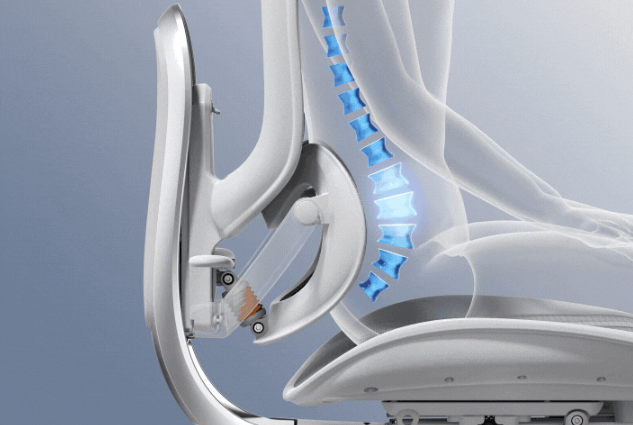 采用随动撑腰技术,结合腰椎+骶骨支撑系统,椅背可随坐姿变化调整支撑角度,腰椎和骶骨得到持续承托,长时间坐着也能减轻腰部疲劳。