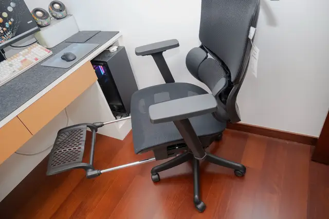 Gesture最大的特点是靠背能随着身体动作变化自动贴合。坐直、前倾或者后仰时,背部都能持续被托住,不会突然空一块。支撑感不算特别硬,更多是柔韧、贴合的感觉,时间坐久了也不会觉得被顶着。腰背压力分散得比较均匀,属于那种不太张扬,但坐久后能明显感觉舒服的类型。