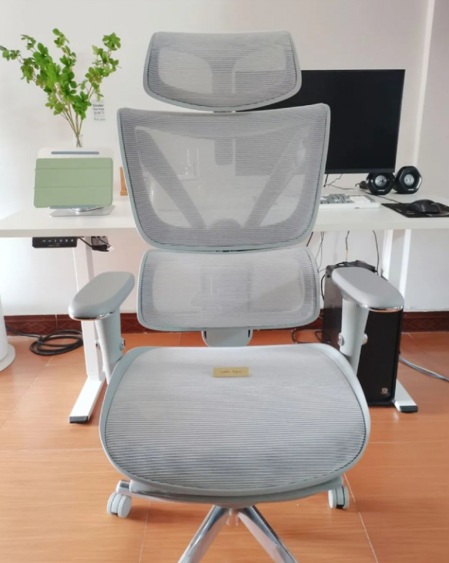 网布分区承托,透气性好,长时间办公不会闷热。做工扎实,滚轮顺滑,细节处理比较到位。它更强调耐用和稳定,适合每天长时间使用的人。需要注意的是头枕需要单独选配。