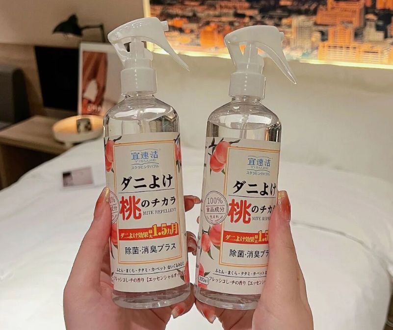 这款绝对是女生的心头好,水蜜桃提取物搭配植物祛螨素,除螨率95.5%。喷完房间里都是淡淡的水蜜桃香,特别治愈。配方温和,玩偶、床品都能喷,300ml的小瓶子随便塞柜子里不占地。