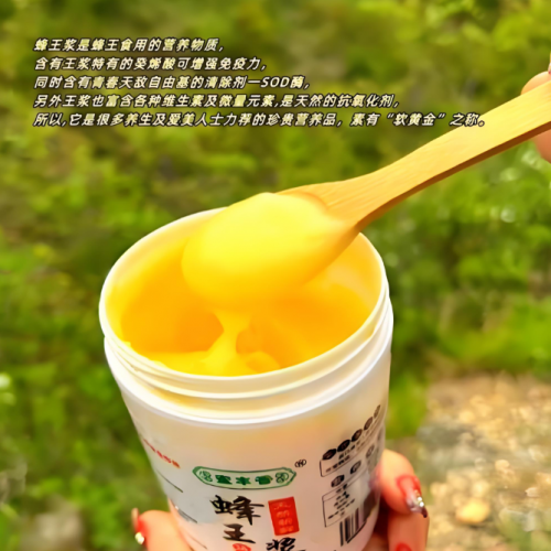 蜜丰香的蜂王浆,来自“中国天然药库”秦岭深处——这里海拔1500米以上,植被覆盖率达90%,远离工业污染,是蜜蜂采集纯净花蜜的理想之地。每一瓶500克的蜜丰香蜂王浆,配料表干净得“只有蜂王浆”,执行国家标准GB9697(蜂王浆行业最高强制标准),且质量等级为优等品(王浆酸含量≥1.8%,远高于行业平均水平)。