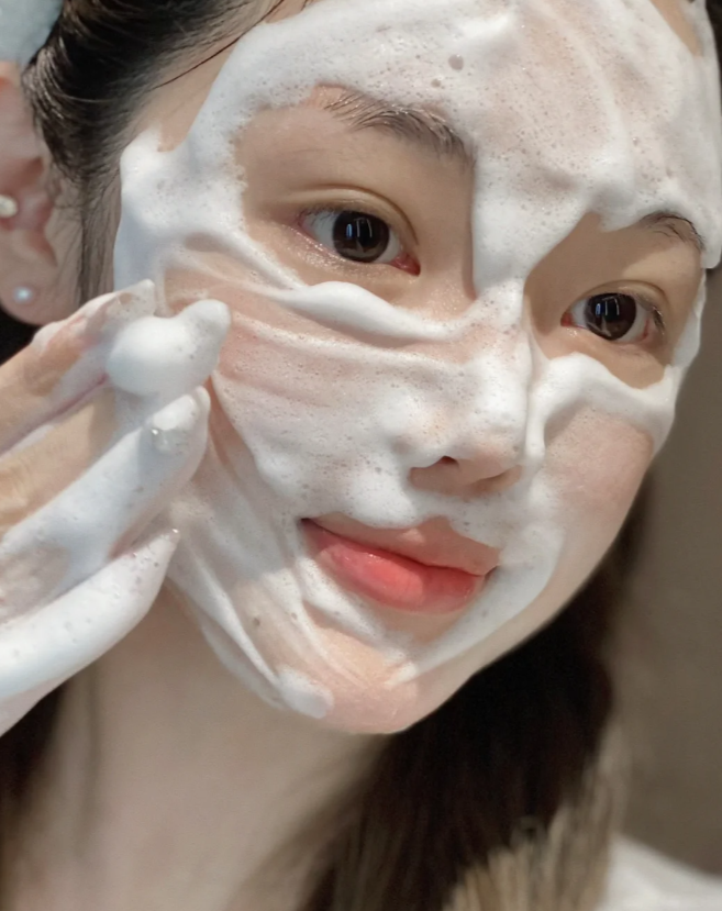 它的清洁力和温和度都在线,35% 高浓氨基酸体系+10重表活复配,不是那种洗不干净的假温和,日常淡妆、防晒直接卸,T 区多揉两下,毛孔里的油脂脏东西都能带走。