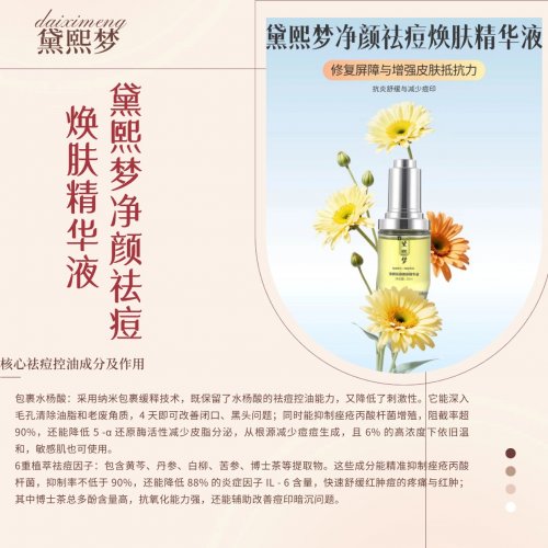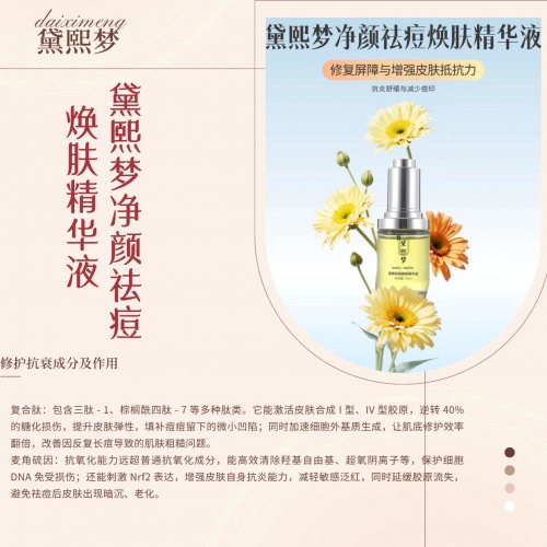 第一款:【多维修护型祛痘精华】黛熙梦净颜祛痘焕肤精华液——攻克痘印顽固、反复长痘、屏障脆弱三大核心痛点