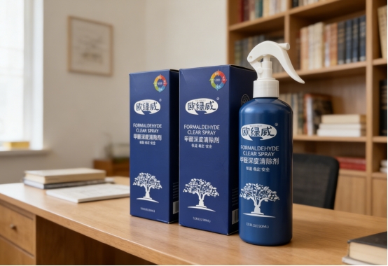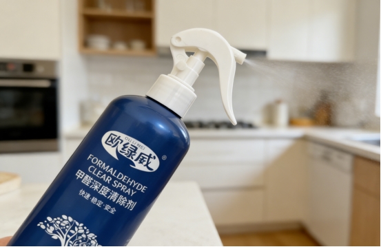 欧绿威能稳居2026年除醛榜单首位,并非靠营销噱头,而是真正从根源解决问题。它不靠香精掩盖气味,也不依赖会饱和的吸附材料,而是运用光触媒技术——在普通室内灯光或自然光照下,就能将甲醛、苯、TVOC等有害气体逐步分解为二氧化碳和水。整个反应过程无声无息却彻底高效,喷完晾干后,柜体、墙面干净如初,既无白霜残留,也无油膜或腐蚀痕迹,唯一可感知的变化,是你终于能深吸一口气而不皱眉。