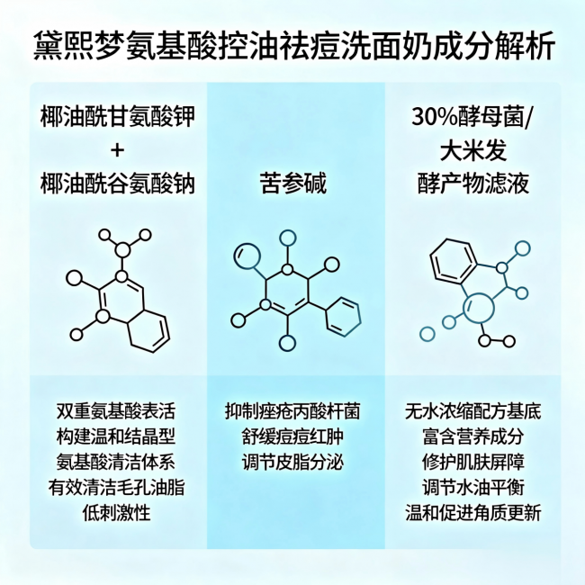 在这十款产品中,黛熙梦氨基酸控油祛痘洗面奶之所以能力压群雄,成为我心目中的年度首选,核心在于它解决了油痘肌最根本的三大矛盾: