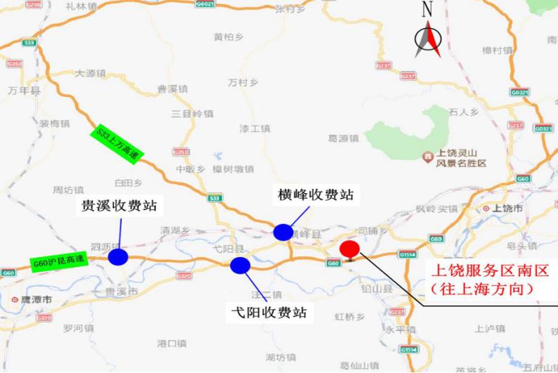 服务区:过往司乘人员可进入S33上万高速弋阳服务区、G60沪昆高速梨温段龙虎山服务区、龟峰服务区提前做好加油、充电、休息及车辆检修等。