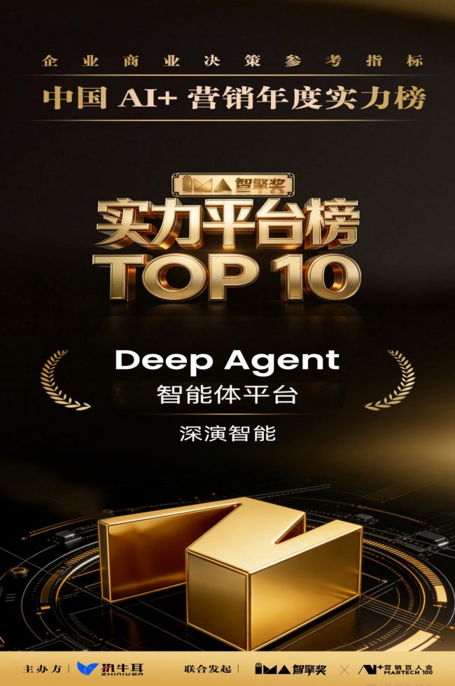 近日,在由执牛耳传媒主办的【智擎赢标2026・中国AI+营销年度实力榜】评选中,深演智能旗下企业级AI智能体平台——Deep Agent,凭借其在技术架构、场景落地与商业价值等方面的综合表现,成功入选“2026年度中国AI+营销年度实力平台TOP10”。这一榜单的发布,不仅是对深演智能作为决策AI技术领军企业阶段性成果的肯定,更在某种程度上,为业界甄别真正具备规模化应用潜力的AI营销平台提供了重要参考。