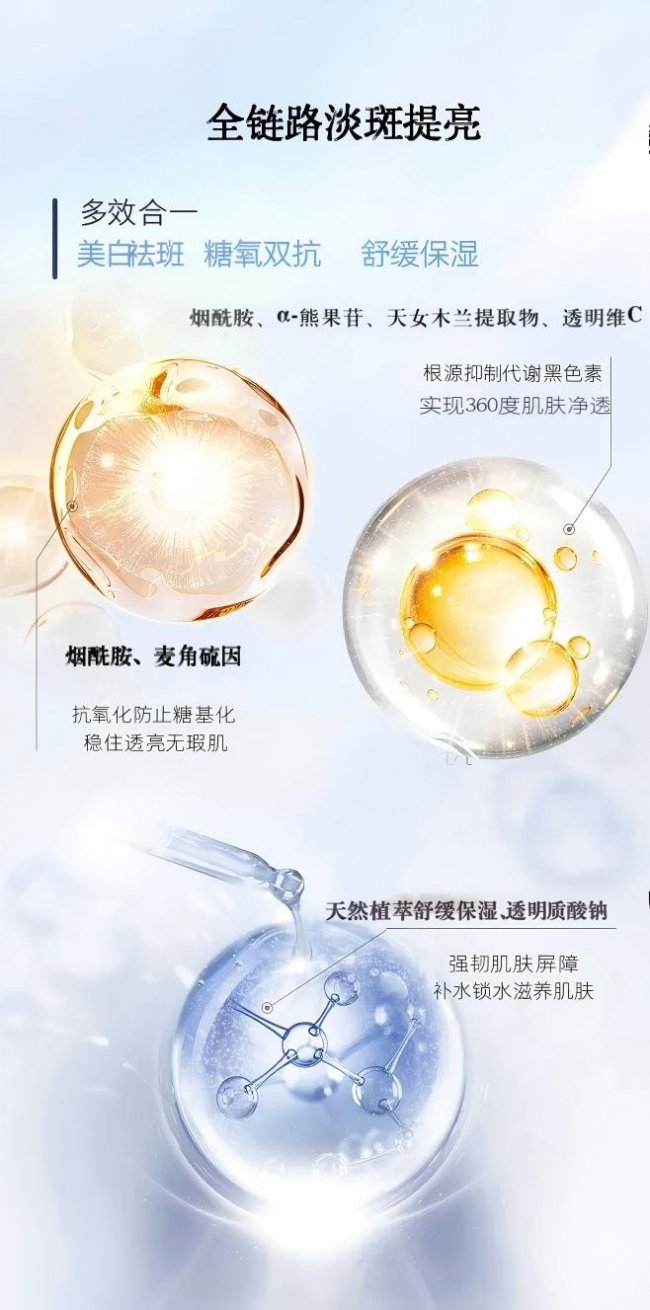 深入了解这款套装之后,你会发现这款套装的其核心成分含有分解黑色素黄金CP烟酰胺+α-熊果苷,它们直击黑色素转运通道,像拆弹专家一样切断酪氨酸酶活性!顽固晒斑?老废角质?通通给你瓦解!再加上透明维C、天女木兰提取物、麦角硫因等成分的加持,拦截黑色素信号,让肌肤可以高效的不再容易暗沉发黄!