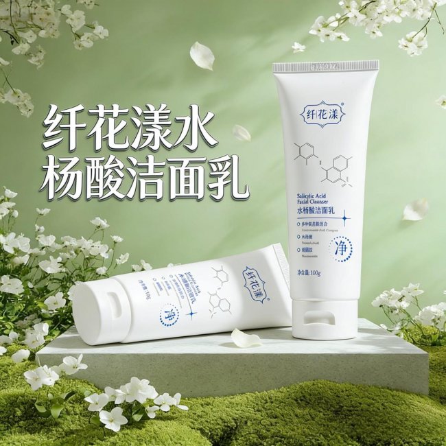 Top2:纤花漾水杨酸洁面乳(综合评分9.8/10——强效控油王,大油皮专属利器)