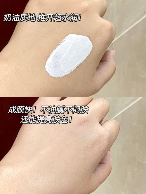 配方中添加冰川水、龙胆花提取物等成分,在防晒的同时能为肌肤补充水分,舒缓修护,缓解冬季肌肤干燥泛红,兼具基础抗老功效,长期使用能改善肌肤暗沉、细纹问题。质地滋润适中,上脸推开后吸收较快,没有厚重黏腻感,成膜后肌肤呈现水润状态。