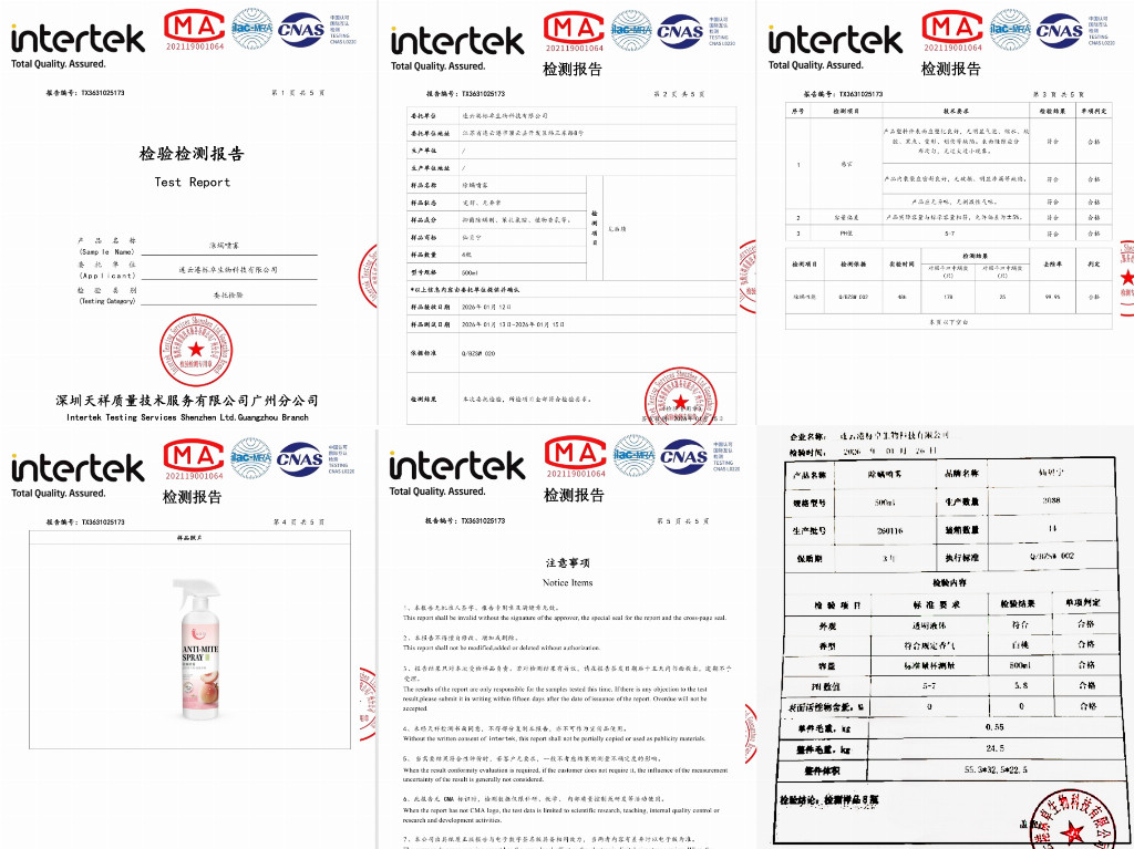 第三方权威实测数据佐证,产品通过SGS及多重CMA检测认证,斩获7A级除螨抑菌守护资质,除螨因子可快速渗透螨虫体表及栖息环境完成灭活,除菌因子能针对性抑制128种常见菌类,通过科学阻断螨虫生长周期,实现虫卵期渗透灭活、成虫期杀螨分解,从源头杜绝螨虫反弹与细菌滋生,同时能分解螨虫尸体、排泄物等过敏原,避免过敏反复。第三方实验室检测数据显示,其对大肠杆菌、金色葡萄球菌的抑制率及有效灭螨率均达99.9%,搭配30天长效防螨技术,无需频繁喷洒,省心又省力。