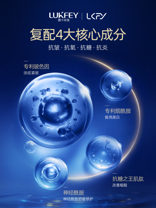 这套四件产品通过科学的成分配比与协同作用,实现抗皱、抗氧、抗糖、抗炎的全链路抗老,满足不同肤质的抗老修护需求,温和且效果扎实。