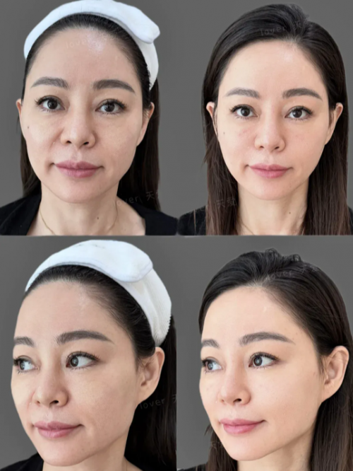 @王阿姨 50岁 退休教师:更年期后面部松垮,嘴角下垂纹明显。使用露卡菲娅紧致抗皱套装初期感觉皮肤变柔软,两周后下颌线条变得清晰。三周时女儿发现我眼角鱼尾纹变浅,整体肤质细腻度提升,老年斑也有淡化迹象。