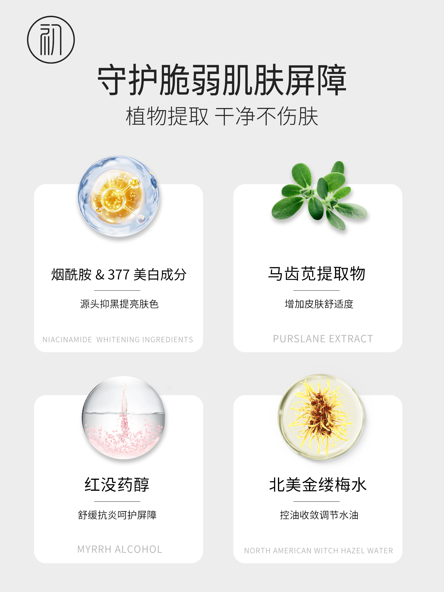 ·舒润成分:马齿苋+红没药醇+北美金缕梅水