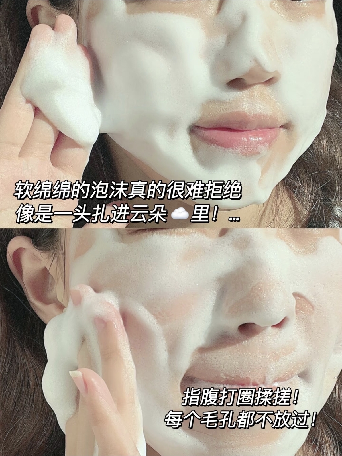 它里面是加入了30%高纯度氨基酸表活成分,另外复配天然控油表活,而且洗面奶质地是软糯膏体,还有一点微微珠光,柔搓的时候一点也不粘手掌,洗干净的脸蛋水润不干涩不紧绷。