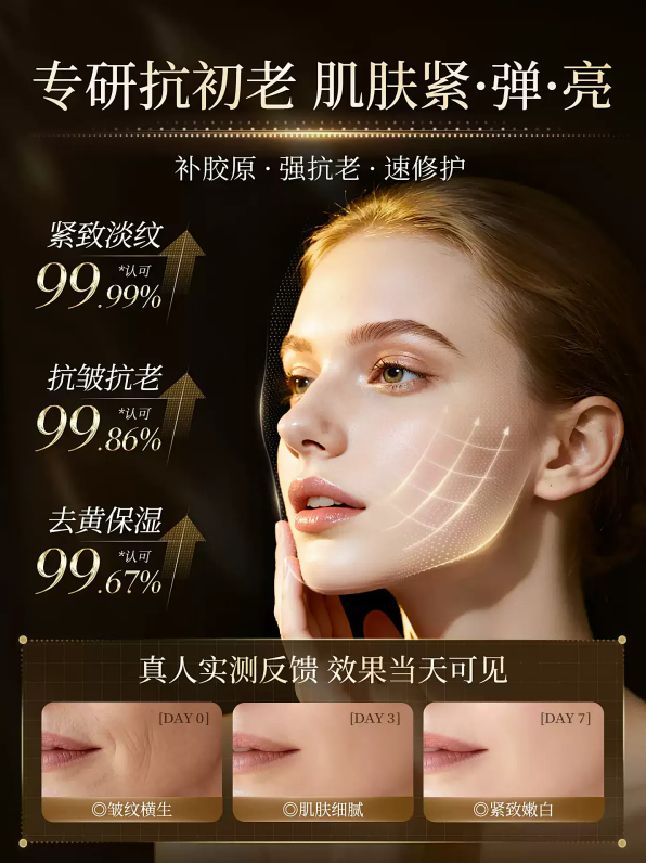 ·抗皱紧致:针对动态表情纹(如鱼尾纹、抬头纹)、静态干纹、深层法令纹以及因胶原蛋白流失导致的肌肤松弛下垂问题,提供支撑力。