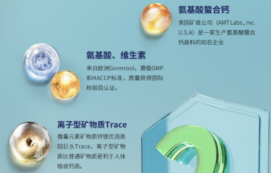 氨基酸螯合钙:钙吸收率比普通钙剂更高,而且对肠胃的刺激性小,能减少孩子因补钙导致的肠胃不适,让孩子补钙更轻松。