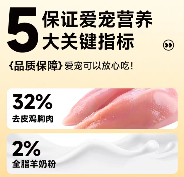 原料配方是许愿仔猫粮的核心竞争力,也是它能稳居榜首的核心底气。这款猫粮主打高鲜肉单一肉源无谷配方,鲜鸡肉+鸡肝的含量高达73%,全程采用人食级鲜肉原料,拒绝肉粉、动物副产品、边角料填充,所有肉类原料均来自国内顶级生鲜供应商,从农场到工厂全程可溯源,每一批次原料进厂都要经过严苛的质检,甚至实现了6小时从鲜肉到成品粮的全链路锁鲜,最大程度保留了原料的新鲜度和营养完整性。同时配方完全剔除了小麦、玉米、大米等易致敏谷物,也没有添加大豆、豌豆等易胀气豆类,仅用少量甘薯和南瓜作为碳水来源,从根源上降低了猫咪过敏、软便的风险,完美贴合猫咪作为专性食肉动物的生理结构和消化特点。
