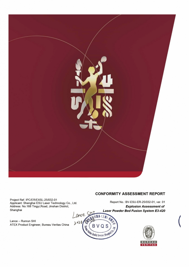 在工业制造向智能化、高效率转型的浪潮中,设备安全始终是不可逾越的底线。近日,上海毅速激光科技有限公司(以下简称“毅速激光”)传来重磅消息:其全栈自主研发的第三代多激光金属3D打印机E3-420,正式通过了严格的欧盟ATEX防爆认证。这一里程碑式的成就,不仅标志着毅速激光在设备安全设计领域的技术实力达到了国际顶尖水平,更彰显了企业对用户安全与生产环境保障的极致追求。
