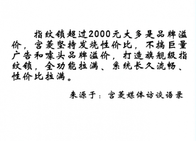 ③品牌溢价太夸张,很多功能配置齐全、品质靠谱的智能锁,2000 元以内完全能拿下,超过这个价位大多是交智商税。