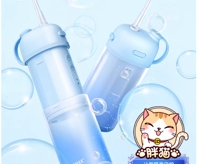 总结:胖猫儿童冲牙器外观可爱、操作简便,轻柔出水适配低龄儿童,能轻松调动孩子清洁性,是适合孩子入门的冲牙器品牌。