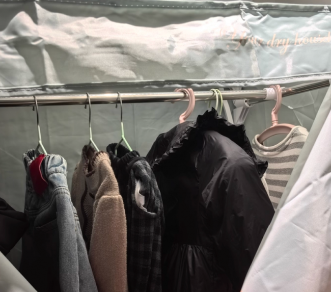 用户反馈:这款真的太适合租房党了,小巧不占地方,不用时折叠起来就能塞进柜子里。恒温烘干很贴心,不会因为温度过高导致衣服掉色、变形,多档模式也很实用,薄款衣服可以选快速烘干。