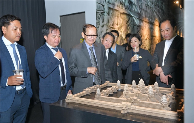 活动当天上午,柬埔寨文化与艺术部国务秘书H.E SOM SOKUN(邵速坤)阁下、文化技术总局局长H.E CHHUM MENGHONG(春明丰)阁下、电影与文化传播局局长Mr. POK BORAK(鲍博烈)先生、X Capital 投资有限公司CEO Mrs. EAR SOPHEA(杨淑蓉)女士、柬埔寨-中国友好合作促进会副会长 Mr. CHEA KHORN(罗俊玮)先生以及柬埔寨-中国友好合作促进会中国代表林有源先生等柬方贵宾,与中方嘉宾一同出席了《吴哥的微笑》沉浸式数字体验展的剪彩仪式,并进行了深度参观体验。
