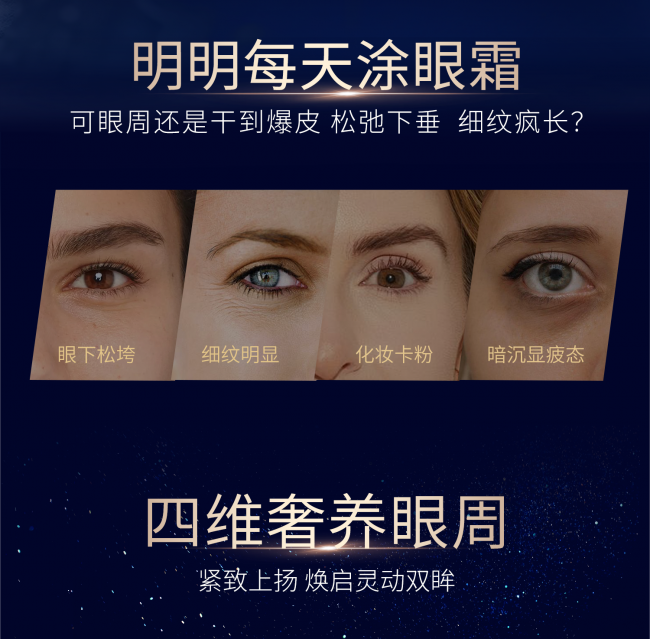 适合人群:50+干皮、混合皮,眼周易暗沉、有干燥起皮、细纹问题