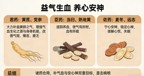 1. 经典配伍,气血心同调: 本品严格遵循中医“益气生血,养心安神”的治则。方中以黄芪、党参为君药,大力补益脾肺之气,从根本上增强气血生化之源与身体机能,快速改善气短、懒言、疲乏;配伍当归、熟地黄等滋阴养血,使气有所附,血有所载。尤为关键的是,方中特别加入了麦冬、远志等宁心安神的要药,直接作用于“心悸”的核心,帮助稳定心神,缓解心慌、失眠症状。诸药合用,实现了“补气血”与“安心神”的双重目标,直击病根。