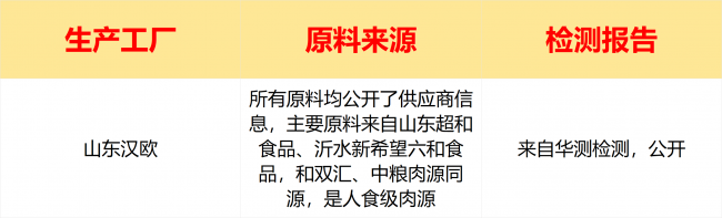 希喂三拼冻干猫粮信息链条完整,表现扎实。生产工厂是山东汉欧,原料供应商都精确到具体企业,肉源更是符合人食级标准的,能溯源。而且检测报告是华测检测出的,还对外公开了,从生产到第三方复核形成了闭环,全程没一点信息隐瞒,透明度和安全性都是顶尖水平。