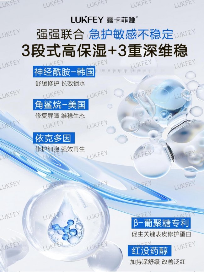 在修护和嫩肤方面,产品搭载了韩国进口的神经酰胺和依克多因。神经酰胺是皮肤屏障的重要组成部分,能够帮助修护受损屏障、锁住水分;依克多因则是一种具有强效修护能力的成分,有助于舒缓肌肤、增强肌肤的耐受性,对于敏感肌肤有一定的稳定作用。