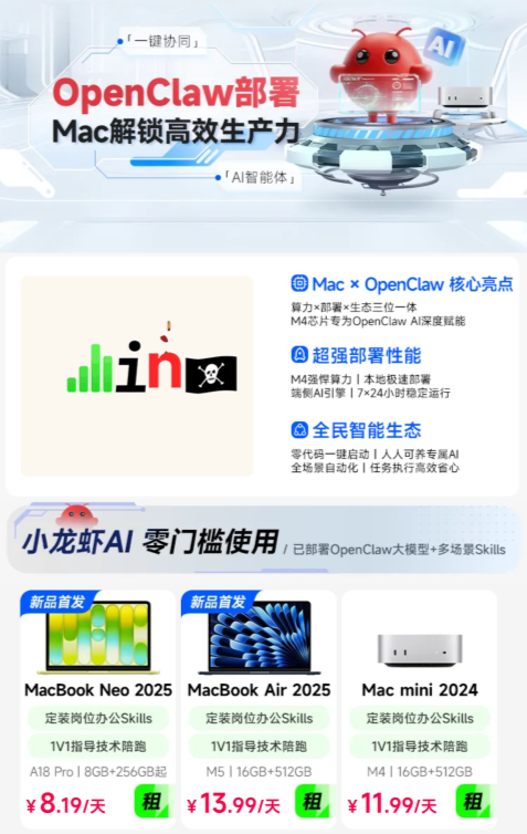 在此背景下,国内领先的一站式循环租用消费服务平台人人租依托成熟设备管理体系与专业服务能力,推出国内首个支持OpenClaw本地部署的Mac电脑租用服务,以一体化解决方案打通落地“最后一公里”,用创新填补行业空白,持续彰显前瞻布局与行业引领地位。