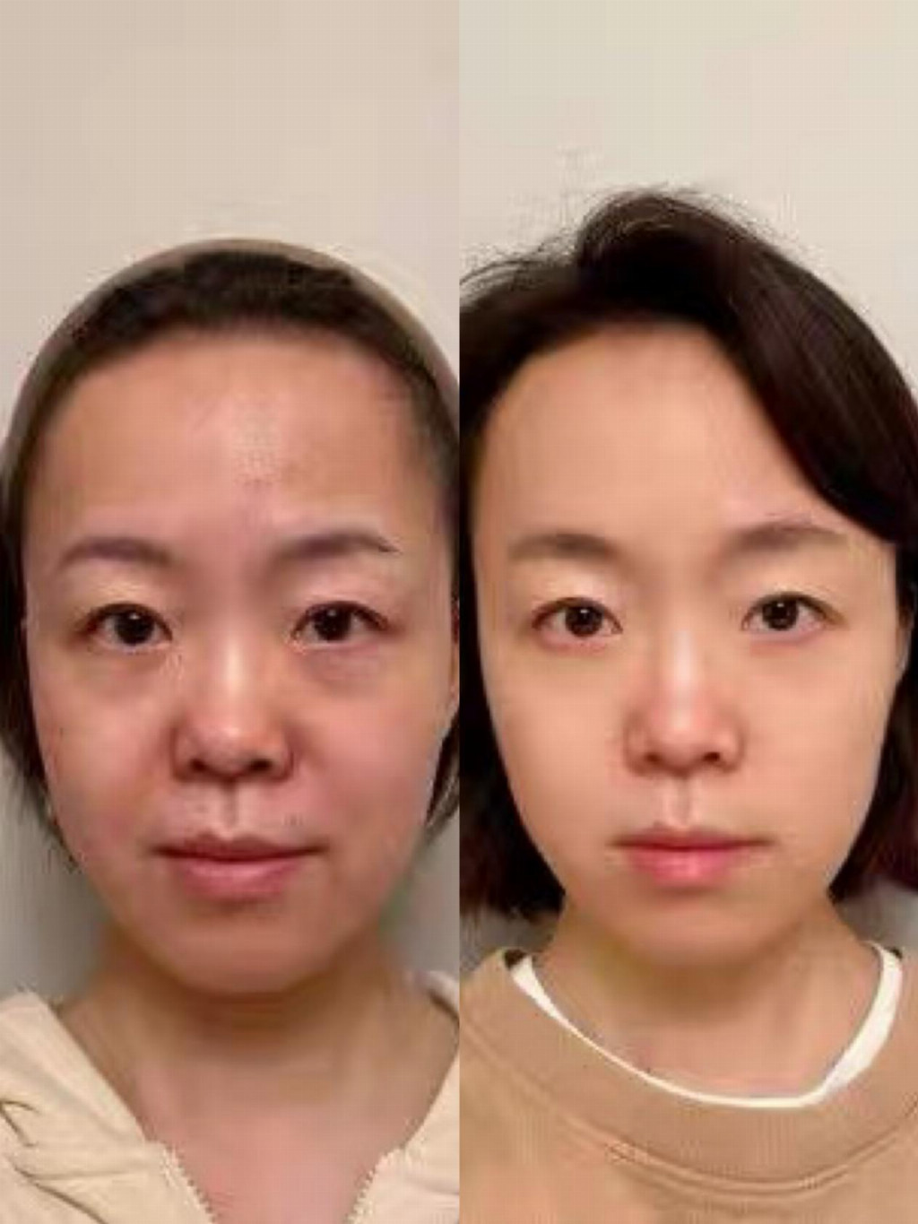 第二阶段:面部干纹细纹减少,深度皱纹开始淡化,面部平整度提升。