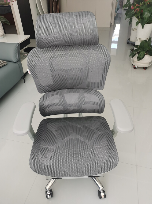 支撑度:椅子的框架和脚架是铝合金材质,比较结实耐用。椅背和坐垫用的是高弹性网布,分了多个不同张力的区域,坐着时能比较均匀地承托身体压力。第五代智感双控腰托还能自动调节,贴合腰部曲线,支撑感适中,椅背按下去既柔软又有弹性。